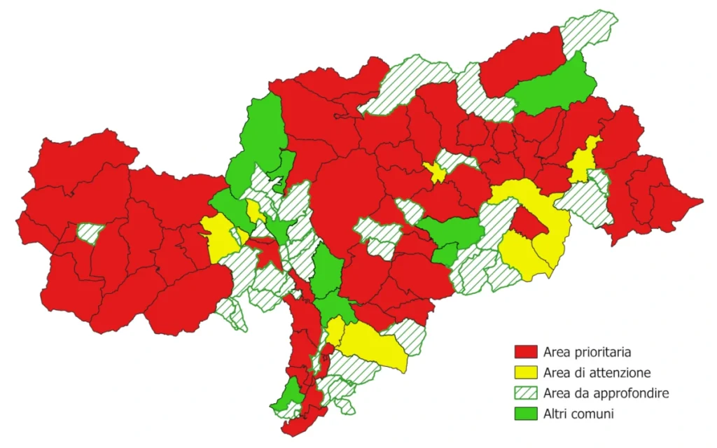 Le aree prioritarie della Provincia di Bolzano sono consultabili in una mappa sul sito web dell’Agenzia provinciale per l’ambiente e la tutela del clima. La mappa raccoglie le misurazioni degli ultimi 20 anni e rispetta le linee guida UE e nazionali.